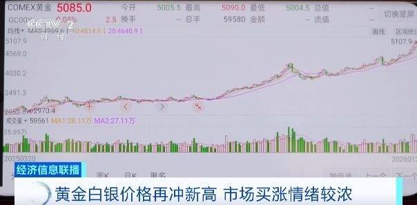 截至北京时间27日下午3时,纽约COMEX黄金期货报约5085美元/盎司,较前一交易日收盘的5004.8美元/盎司继续上涨;COMEX白银报约110美元/盎司,同样较前一交易日收盘价继续上涨。今年以来,国际黄金期货价格涨幅已超17%,白银涨幅则高达55%。